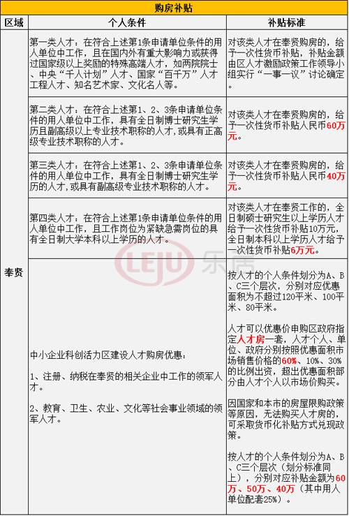 来源:《奉贤区人才购房补贴实施办法》【有效期:2014年7月2日--2019年7月1日】、《奉贤区中小企业科创活力区建设人才购房优惠政策实施细则》